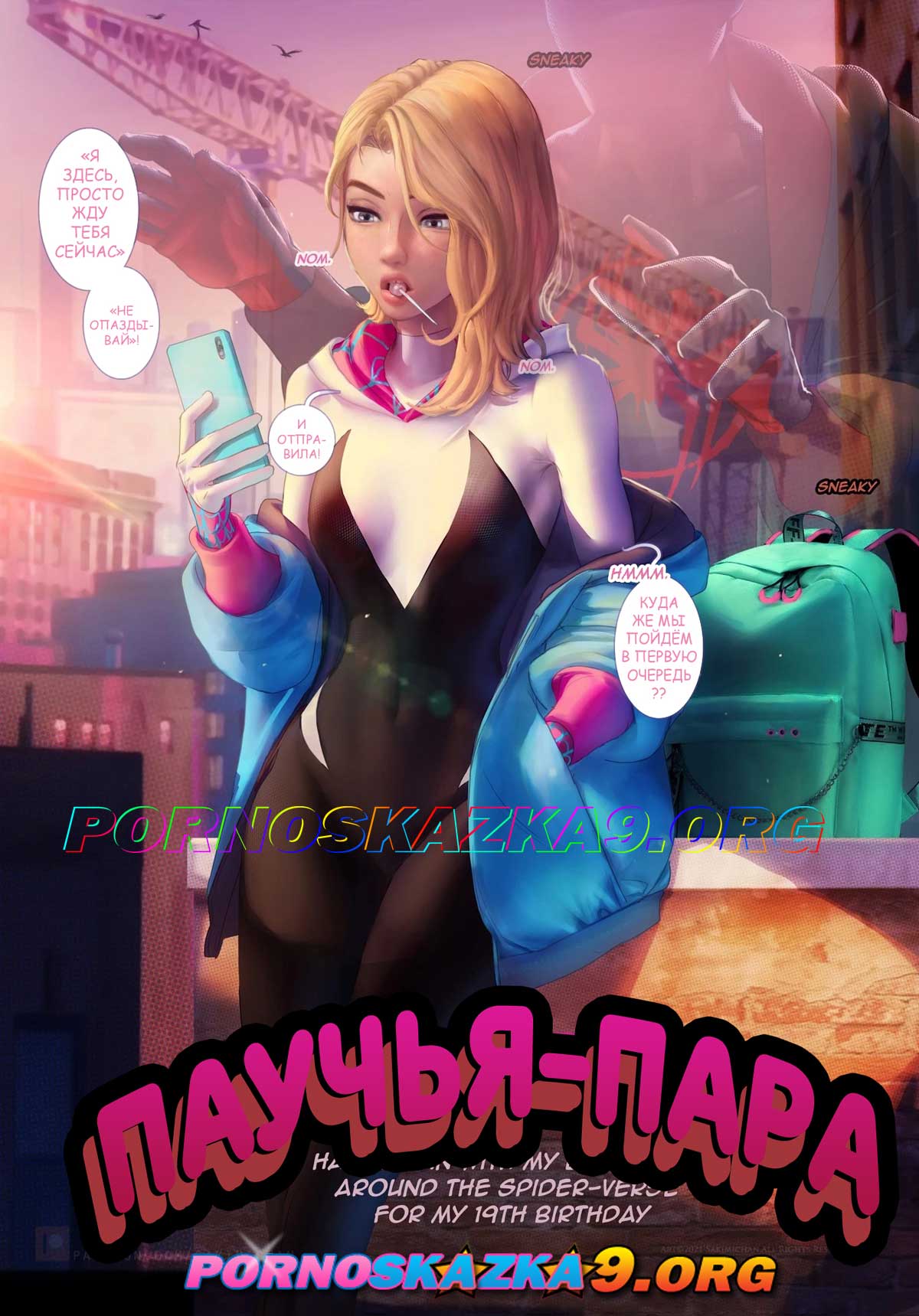 Порно комикс «Супер героини ХХХ. Часть 2. Счастливый пациент.» Человек-паук заболел, и Черная Кошка решает залезть к нему через окно, чтобы высосать из него вирус, сделав ему минет, который умеет делать только она. Но она не ожидала, что Мэри Джейн тоже придет присмотреть за своим мужем…